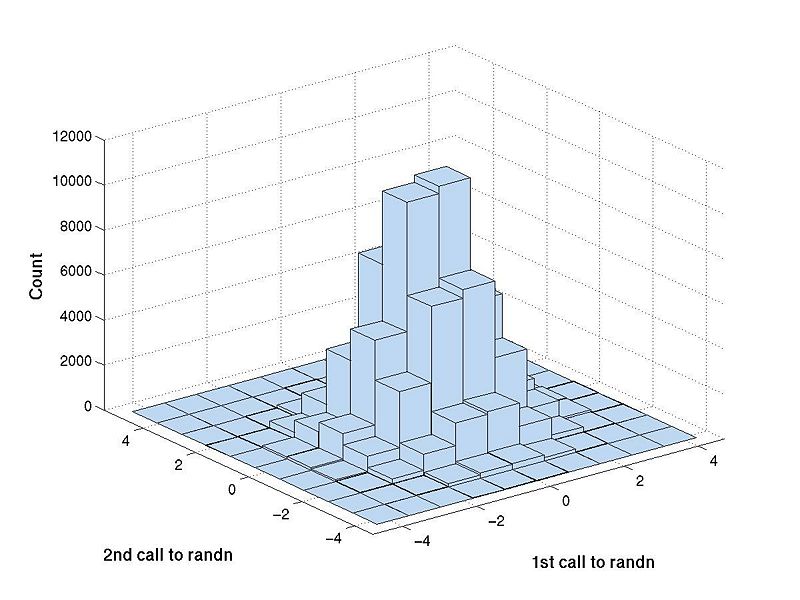 current01:30, 3 February 2009Thumbnail for version as of 01:30, 3 February 20091,200 × 900 (104 KB)Carver (talk | contribs)Bivariate histogram of two calls to randn.