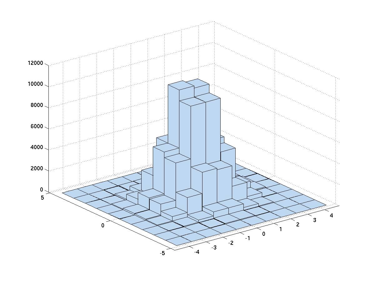 current01:30, 3 February 2009Thumbnail for version as of 01:30, 3 February 20091,200 × 900 (104 KB)Carver (talk | contribs)Bivariate histogram of two calls to randn.